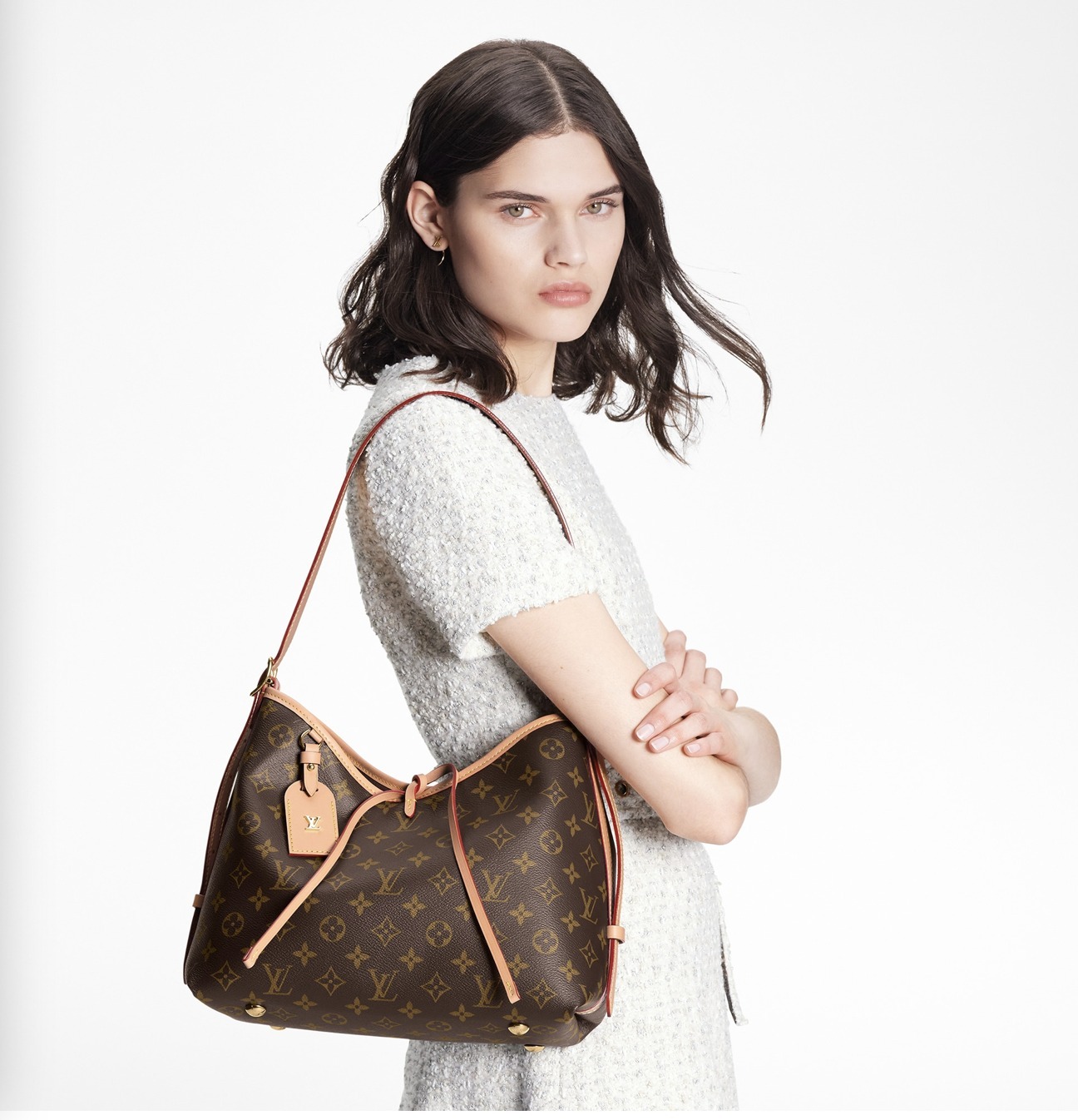 美しさとボディフレンドリーなデザインが融合した「キャリーオール NM PM」。モノグラム・キャンバスにナチュラルレザーのトリミングを施した、普段使いにぴったりのシティバッグです。内側には2つの大ぶりのポケットをあしらい、大容量で機能的なデザインに仕上げました。同じくモノグラム・キャンバスを使用した取外し可能なファスナー付きポーチは、レザーストラップでバッグに取付けられています。